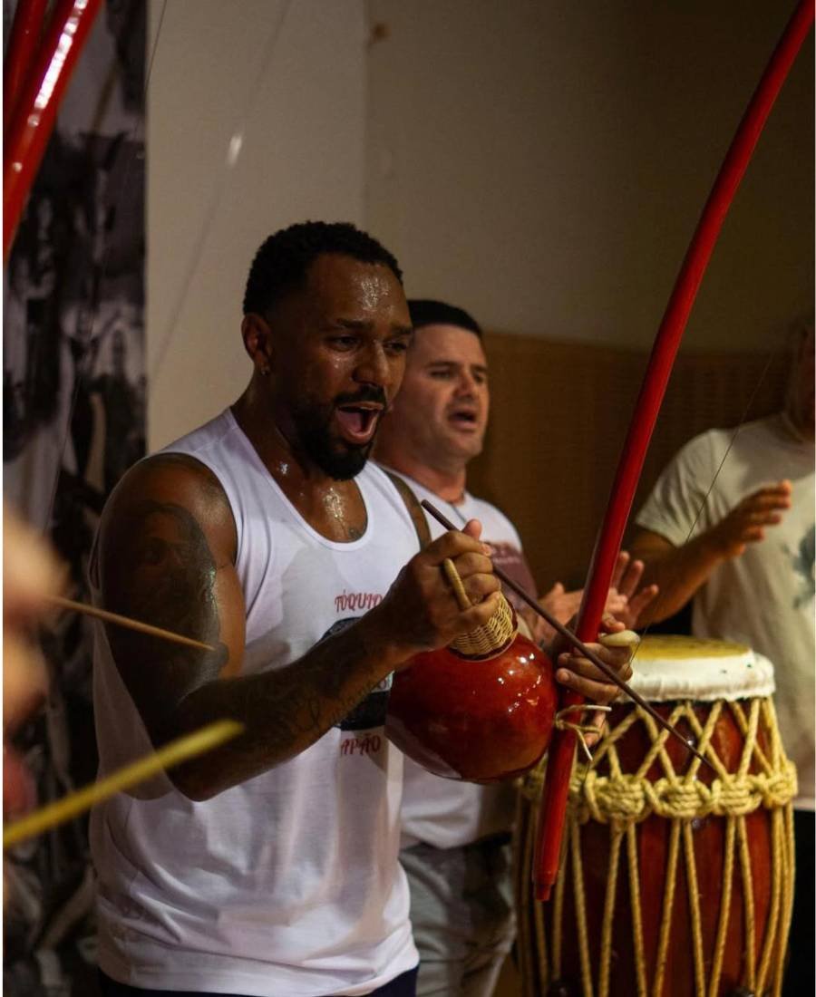 mas também a musicalidade, cultura e energia da capoeira brasileira.
